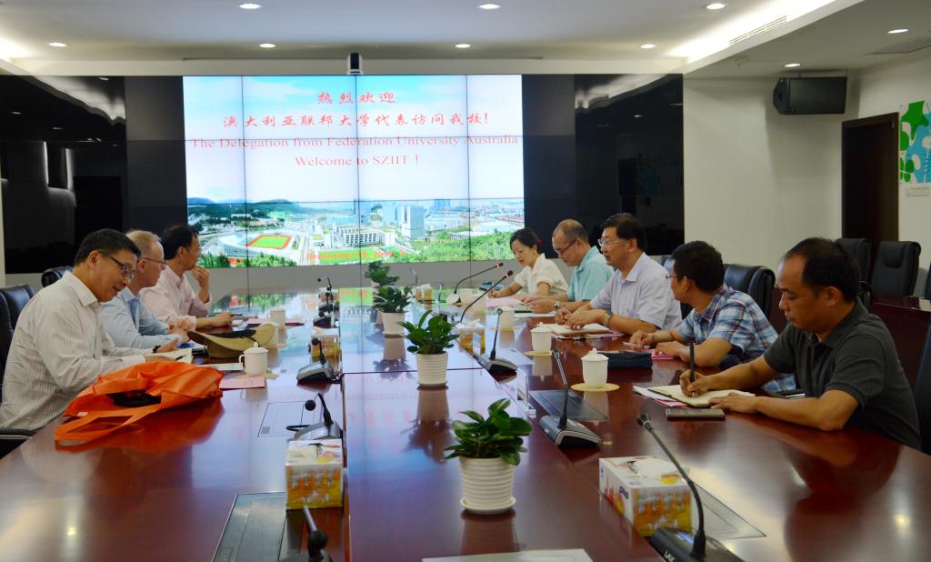 杨欣斌副校长对客人的来访表示热烈欢迎, 并介绍了我校基本情况。他表示,我校近年非常重视对外合作交流,澳大利亚的职业教育处于国际前列,联邦大学在信息类专业职业教育方面卓有建树与特色,是我校重要的国际合作伙伴。Mark Sandeman院长在观看我校宣传片和听取介绍后,赞赏我校的跨越式发展、雄厚的师资和科研力量,表示对合作办学前景非常乐观。与会双方就合作科研项目、讲座教授引进、师资长周期交流、学生交换等方面进行深入交流,探讨了中外合作办学大专层次项目“3+0”的模式,并达成了初步合作意向。双方均表示,期待两校深入开展项目合作,探索中外合作办学领域的新路径。