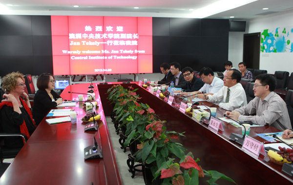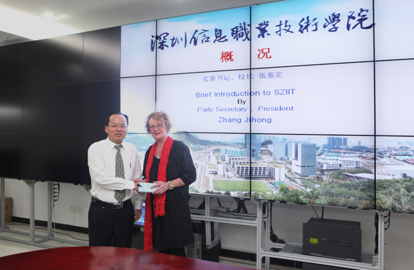 会上,澳大利亚中央技术学院副院长Jan Tekely就该校的地理位置、办学历史、专业设置、证书和文凭的颁发、学生就业情况、办学优势以及合作办学项目进行了详细介绍,并重点介绍了中央技术学院与中国院校合作项目所取得的成绩。张校长详细介绍了我校的师资队伍、招生就业、国家高等职业教育网络技术专业教学资源库建设等基本情况,提出我校要以新加坡南洋理工学院和澳大利亚中央技术学院为标杆建设国际一流高职院校。会后,张校长与客人一起参观了校园。