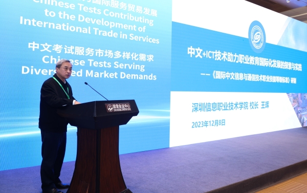 8日,王晖校长在大会平行论坛“中文考试助力国际服务贸易发展”——HSK服务医学、旅游、信息通信技术版块作主旨发言,分享了我校以“中文+ICT”助力职业教育国际化发展的探索与实践。他提到,我校依托自身优势与平台,开展“国际中文+ICT职业技能”教育实践与研究,构建了“通识中文à国际中文+信息通信技能等级à(微)技能证书”知识体系,建设信息与通信技术专业中文能力等级教学资源,培养“懂中文的技术人才”,助力教育部“‘中文+职业技能’融合”,为“走出去”中国企业海外发展提供支撑。