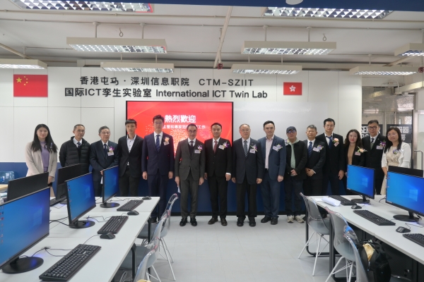 该实验室的成立是两校深度合作的又一里程碑。此前,在深圳市龙岗区领导的见证下,两校共同挂牌成立了首个“深信院·屯马ICT人才培养示范基地暨教学中心”,学生能够在中心修读70余个微证书课程,通过考核可以获得相应证书。此次,我校协调企业向香港明爱屯门马登基金中学捐赠了25台电脑及一台智慧大屏幕,共建首个“香港屯马·深圳信息职院国际ICT孪生实验室”,更好地服务香港师生。实验室配备智慧教学系统和ICT实训云等设施资源,确保了深港学生在教学标准、实训环境和实践项目上的一致性。