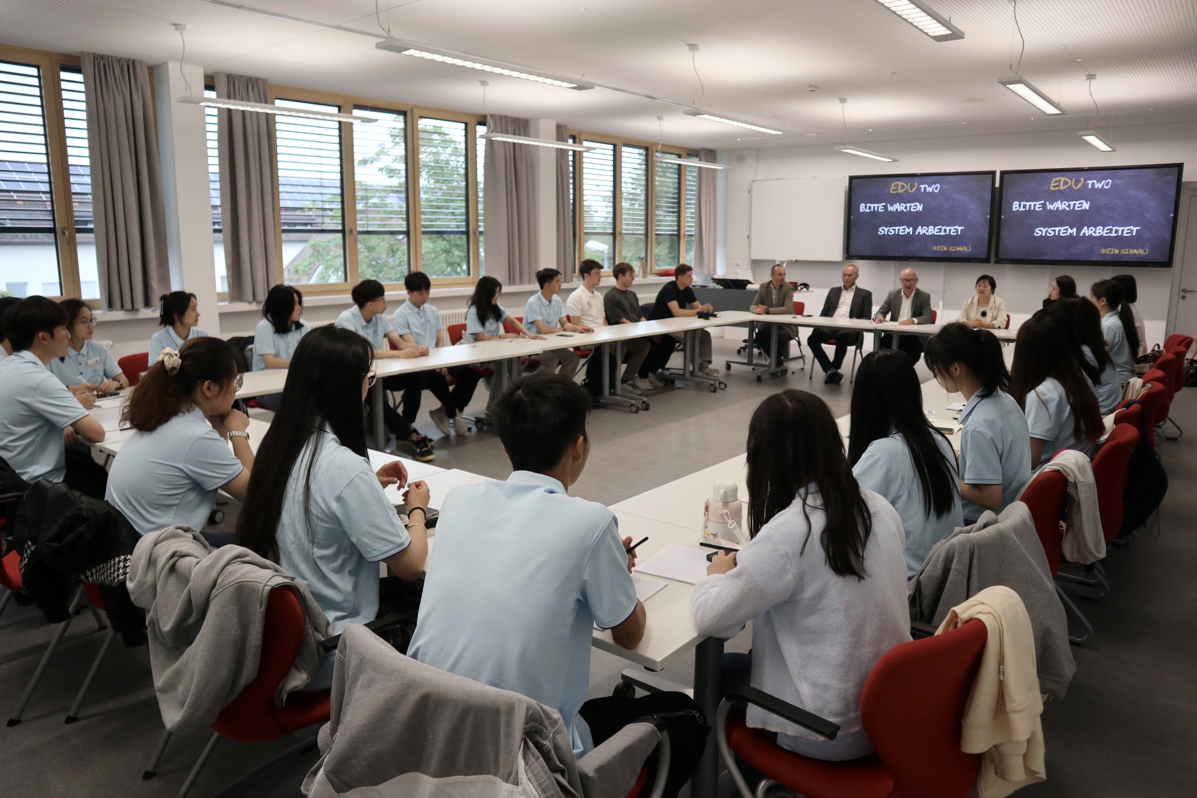 德国当地时间8月1日上午,中德机器人学院赴德实践教学与文化交流项目开班仪式在德国肯普滕国立第一职业学校(以下简称“肯校”)顺利举行。肯校校长汉斯·丹尼弗、副校长约瑟夫·史密德,中德机器人学院党总支专职副书记陈敏娜、学院教师代表以及参与本次实践教学项目的26名中德学生参加开班仪式。