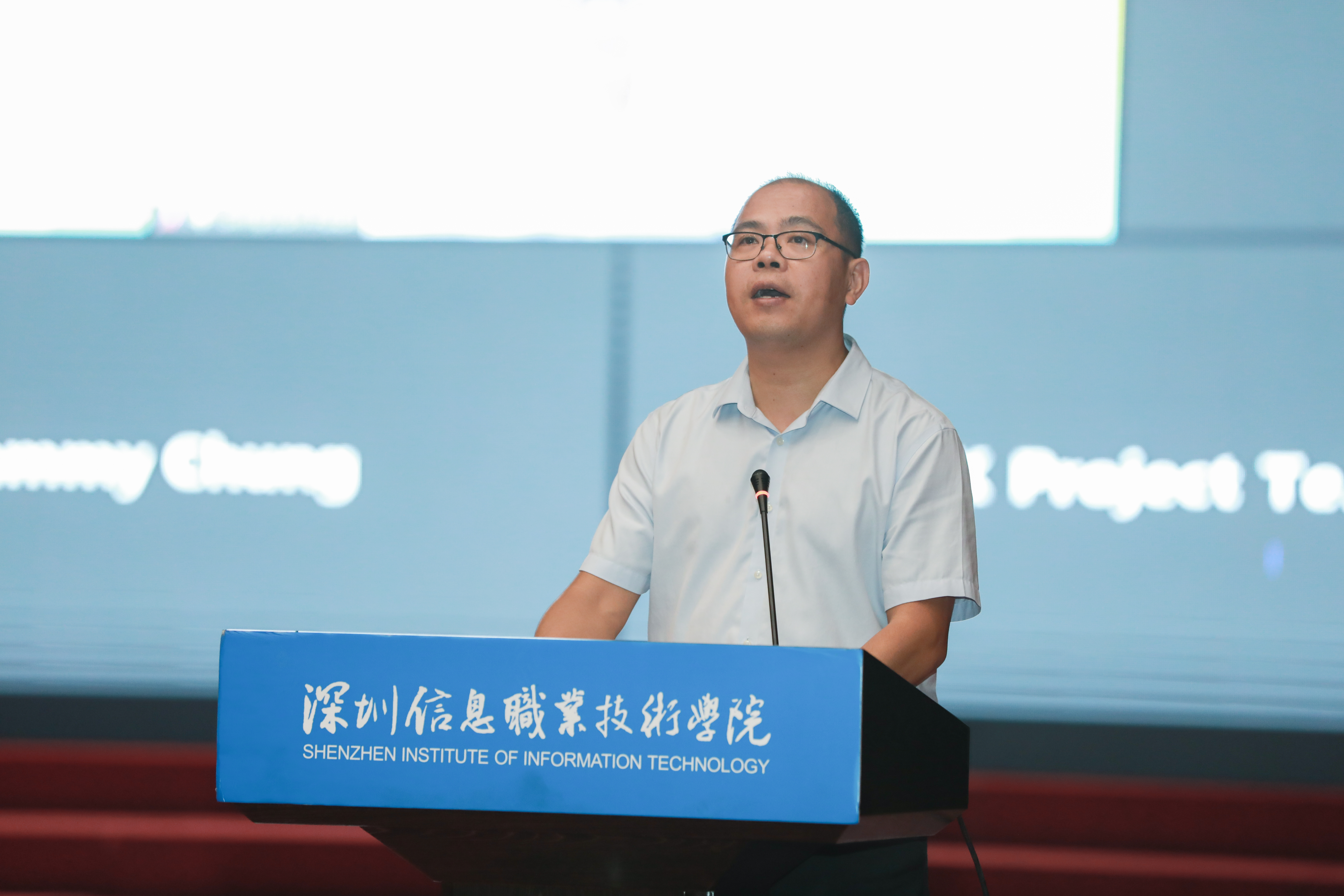 许志良副校长致辞表示,产业技术的不断更新,推动着专业不断优化、再造升级;加速深圳特色职教模式的构建,需要每一位教育工作者不断更新理念、优化教学方法,提升教学水平;希望参加讲座的教师深度领悟专家的教学思想和理念、创新思维,并把这些知识运用到教学和实践中,积极探索新时代ICT人才培养新模式,为学校的发展做出贡献。